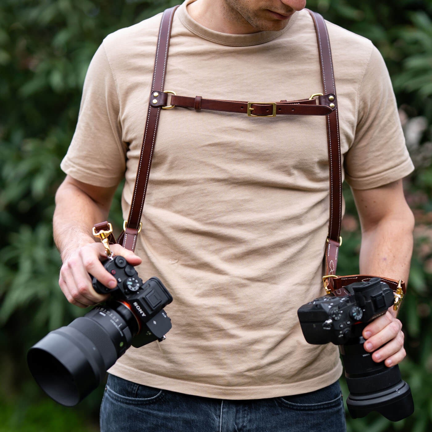 Le Reporter is a leather harness designed for professional photographers who want to keep both of their cameras within easy reach during event shoots, weddings, or photojournalism assignments.
